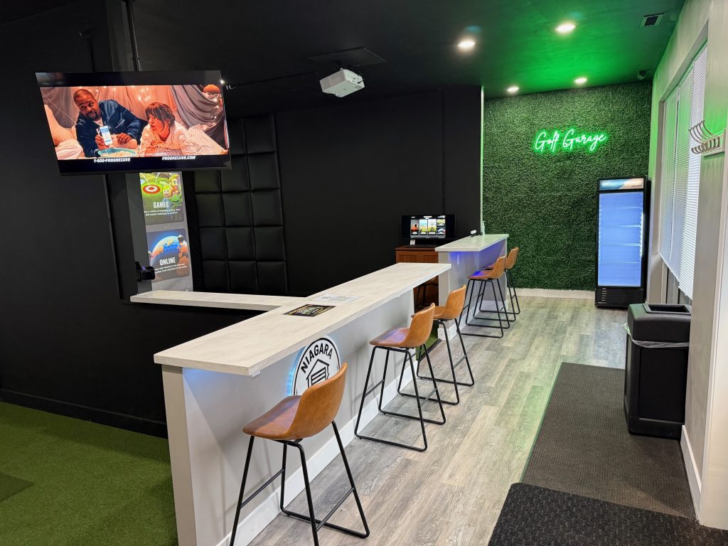 Niagara Golf Garage offers fully automated, 100% self-serve indoor virtual golf simulators, on-demand experience powered by TrackMan.